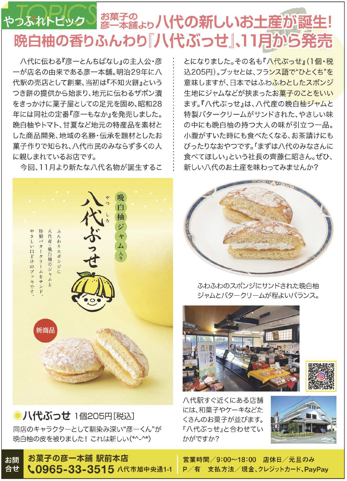 2025年11月号2025.10.30 8pre-admin お菓子の彦一本舗より八代の新しいお土産が誕生!晩白柚の香りふんわり『八代ぶっせ』、11月から発売 ツイート シェア はてブ LINE Pocket ツイート シェア はてブ LINE Pocket feedly