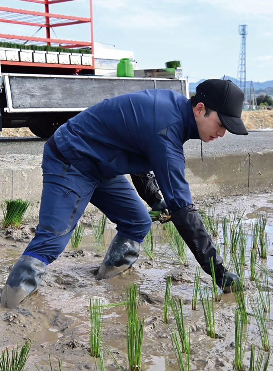 きっかけとなったのは、父にい草農家の現状を聞いた4年前。曾祖父の代から続けてきたい草の生産から米、野菜に転作しようという話を聞いた溝口さんは、当時工場で一緒に働いて和歌山出身の友人にその話をすると「い草って何?」という、考えもしなかった言葉が返ってきて衝撃を受けたそう。「日本に住んでいながら畳の原料を知らない人がいる。この生産をここで途絶えさせてはいけない」という思いが沸いてきて、20歳の成人式で帰郷。そのまま八代の最年少い草生産者として汗を流す日々です。